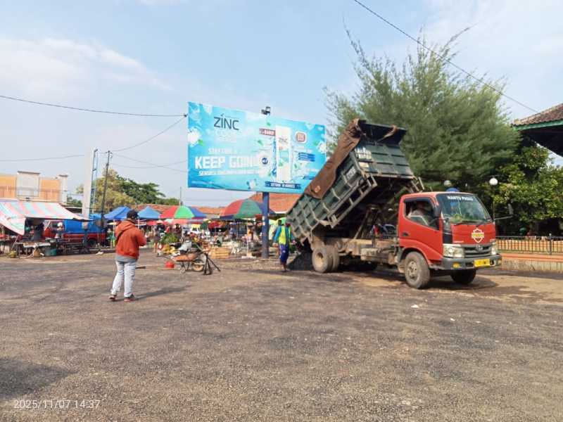 “Dihalaman Pasar, ada Pedagang dan juga banyak sekali pengunjung untuk berbelanja. Dalam pengerjaannya saat ini masuk tahap Leveling,” terang Sukamto. Rohman