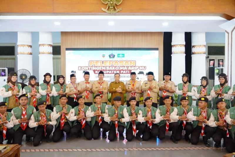 Dalam sambutannya, Bupati Sudewo menyampaikan rasa bangga atas keberhasilan Kwartir Cabang Pramuka Pati, khususnya Sako Ma’arif NU, yang mampu memberangkatkan kontingen hingga tingkat nasional.