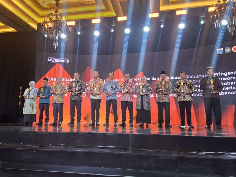 Prosesi penyerahan penghargaan berlangsung di Kempinski Grand Ballroom, Lt. 11, Jakarta Pusat, dan turut disambut oleh Wakil Menteri Dalam Negeri, Akhmad Wiyagus, bersama Kepala BSKDN dan Gubernur DKI Jakarta selaku tuan rumah.