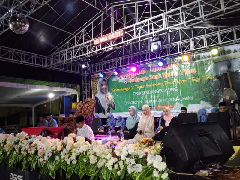 Cakranusantara.net, Kendal || Paguyuban Pasar Kaget Tugutani Desa Sendangdawung, Kecamatan Kangkung, Kabupaten Kendal sukses menyelenggarakan pengajian dengan mendatang dai kondang asal Cilacap Hj. Mumpuni Handayekti di halaman TPQ Roudlotul Muttalimin, Selasa (6-1-2026).