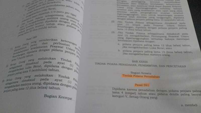 Cakranusantara.net, KUHP || Berikut adalah bunyi Pasal 591 Kitab Undang-undang Hukum Pidana atau Undang-undang Nomor 1 tahun 2023 tentang tindak Pidana Penadahan berbunyi ;