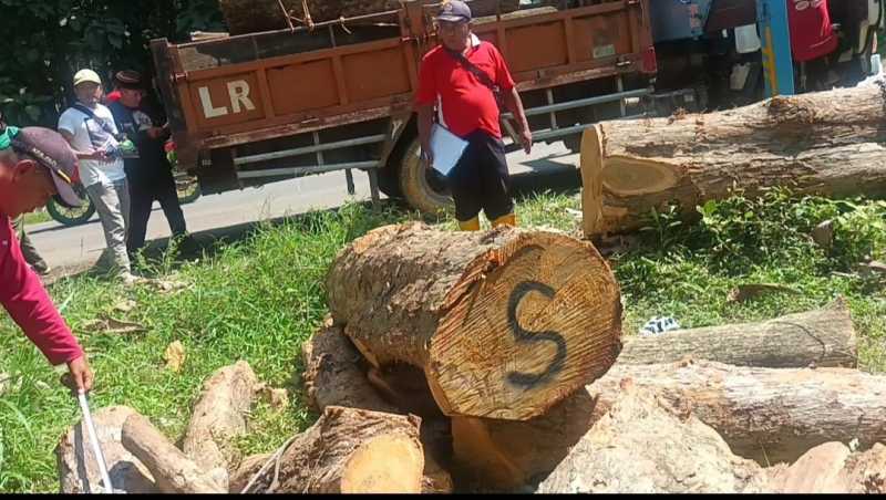 Warga mencurigai adanya upaya klaim sepihak atas pohon-pohon yang diduga bukan milik Perhutani, melainkan aset Dinas Pekerjaan Umum atau pemerintah daerah, Senin (13/04/2026).